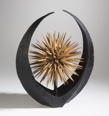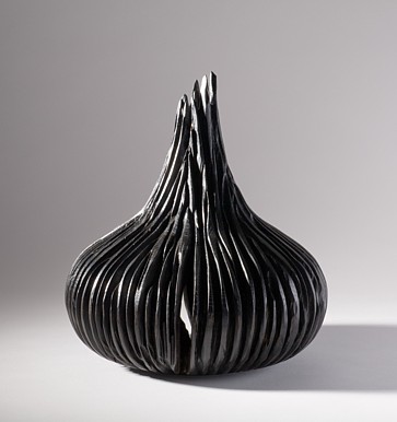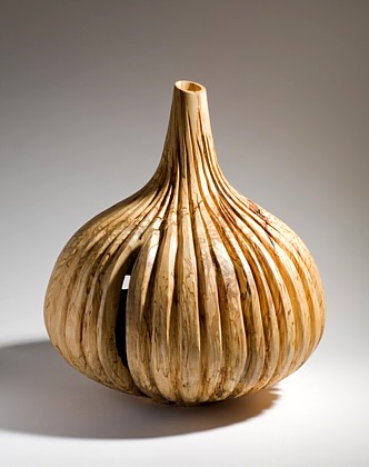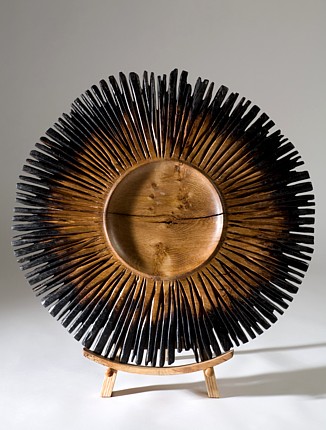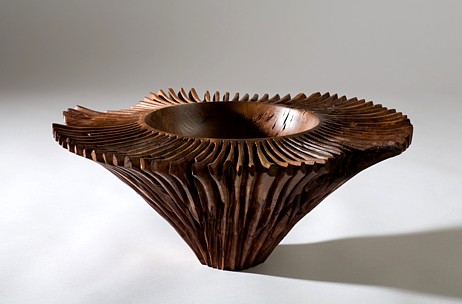 Bowl, burr elm with carved exterior. 350 x 140 mm